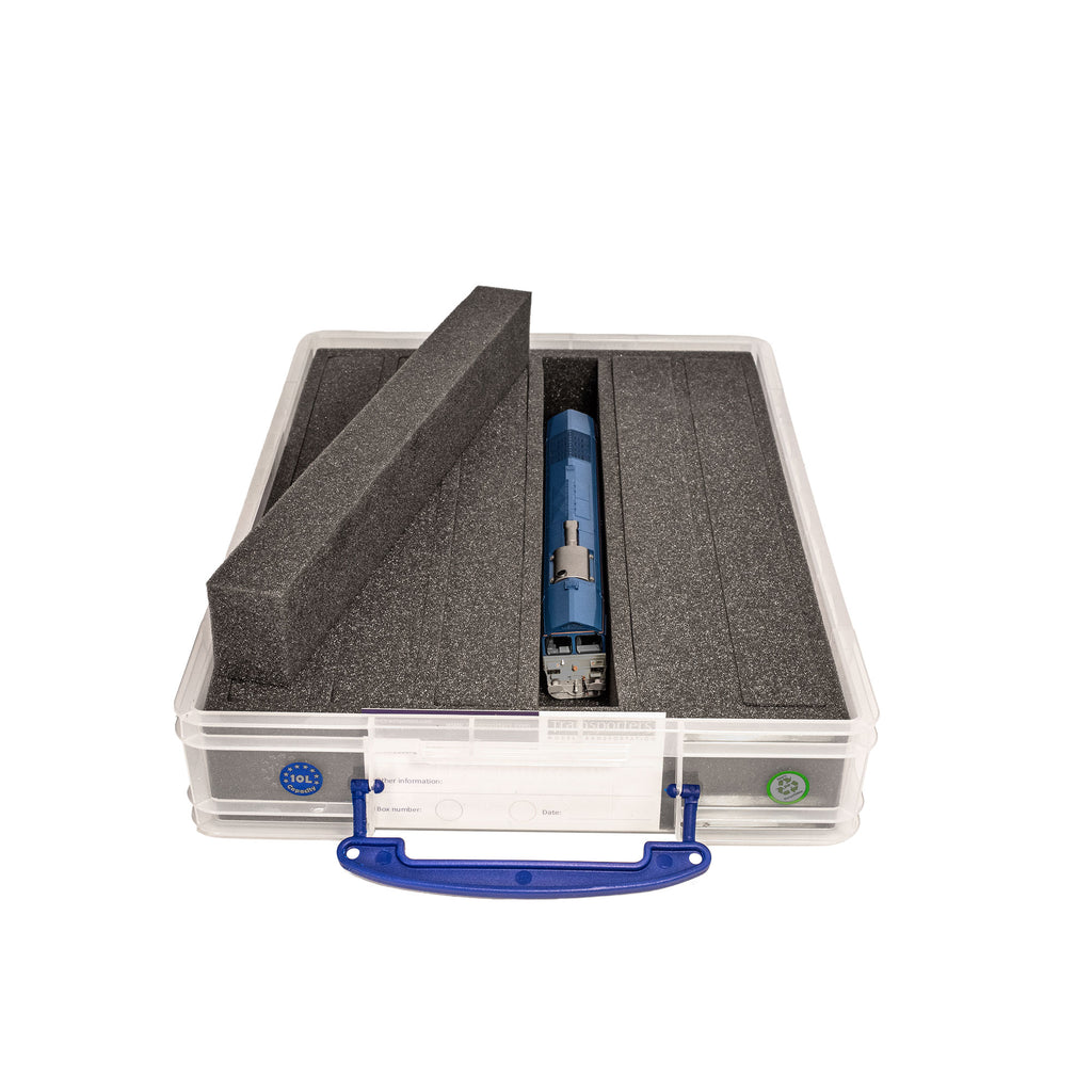 The OO Gauge 6 Slot 10L Box (TSOO13) is designed for modellers who need generous slot dimensions and dependable protection for larger locomotives, coaches or full-height wagons. Built around a proven 10 Litre Really Useful Box, it offers a practical balance of capacity, protection and portability.